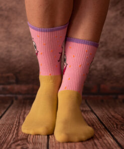 Štýlové veselé ponožky ako šité na tvoje nôžky. Kreatívny a bláznivý dizajn plný sýtych farieb, ktorý ťa hneď pohltí a s ktorým budeš vždy naozaj v pohodlí. Tak zahoď starosti, ukáž svoje predstavy a priprav sa zažiť dni plné skutočnej zábavy.